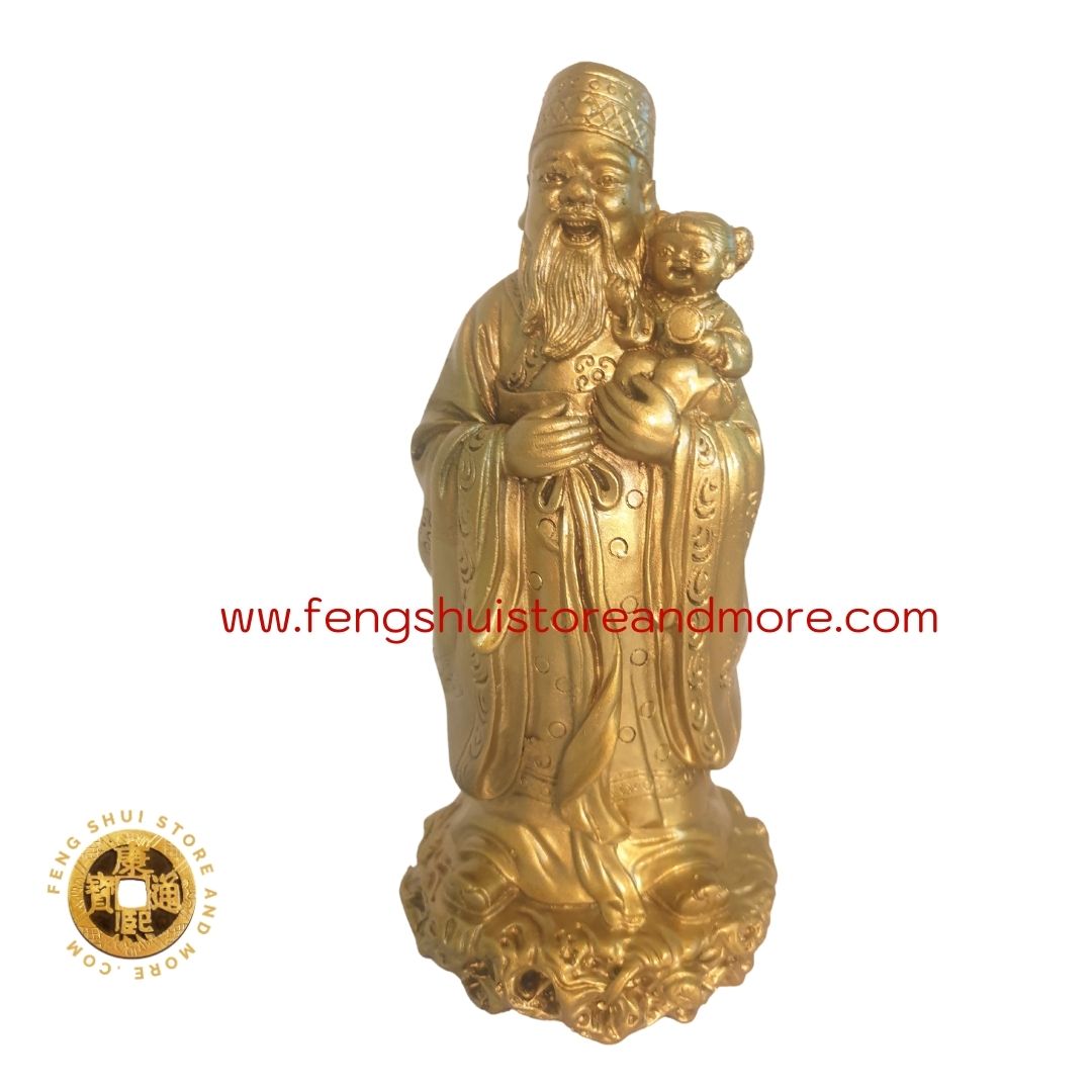Feng Shui Meaning: Perfect for the man of the home or business. Are popular gods Fu, Lu and Shou, and are displayed in the home to encourage health, wealth, and happiness. Fu - represents connection and family, blessings from good fortune. Lu - represents prosperity, business strength and success. Shou - represents health and well-being. You will often find Shou outside of the group symbolizing longevity. Together the three symbolize just about everything that makes people happy and contented. Used to remind us of our intentions to attract all the luck into your life.