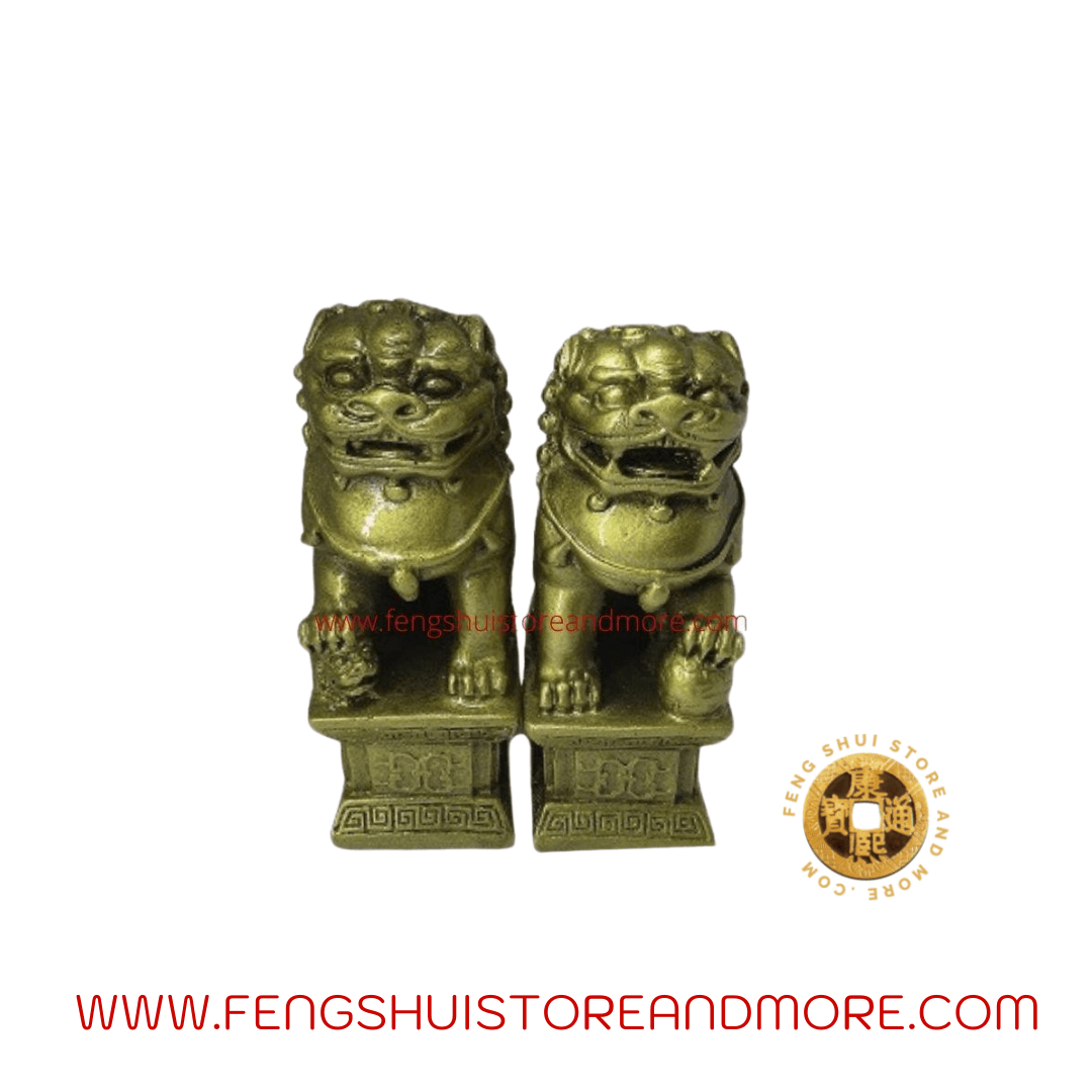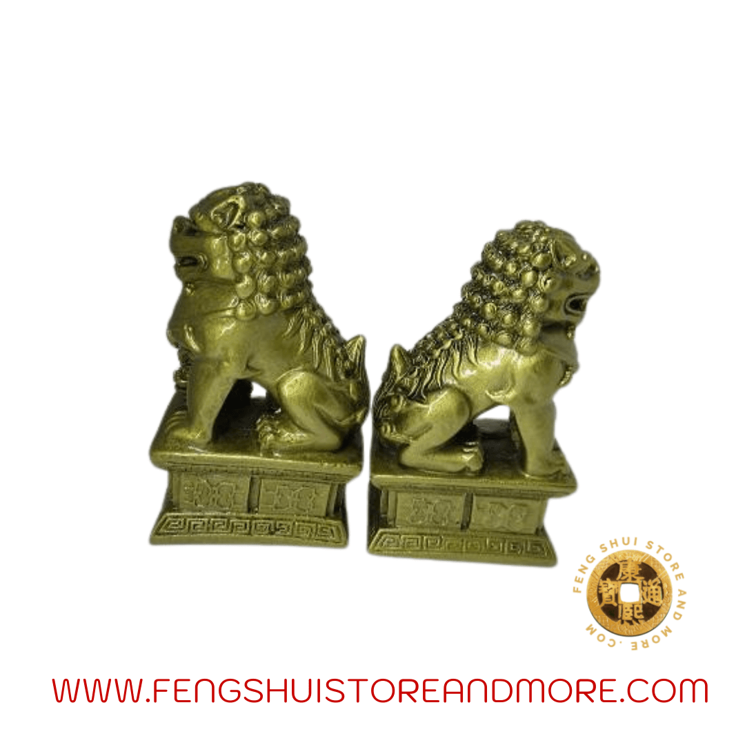 Feng Shui Meaning: Statues have traditionally stood at the entrance of Chinese Imperial palaces, Imperial tombs, government offices, temples,  and were said to have powerful mythic protective benefits. They are also known as Fu Dogs, guardian Lions, or Lion Dogs. Temple Lions are a powerful guardian protection for your home or business. Female represents Yin and the Male represents Yang Energy.
