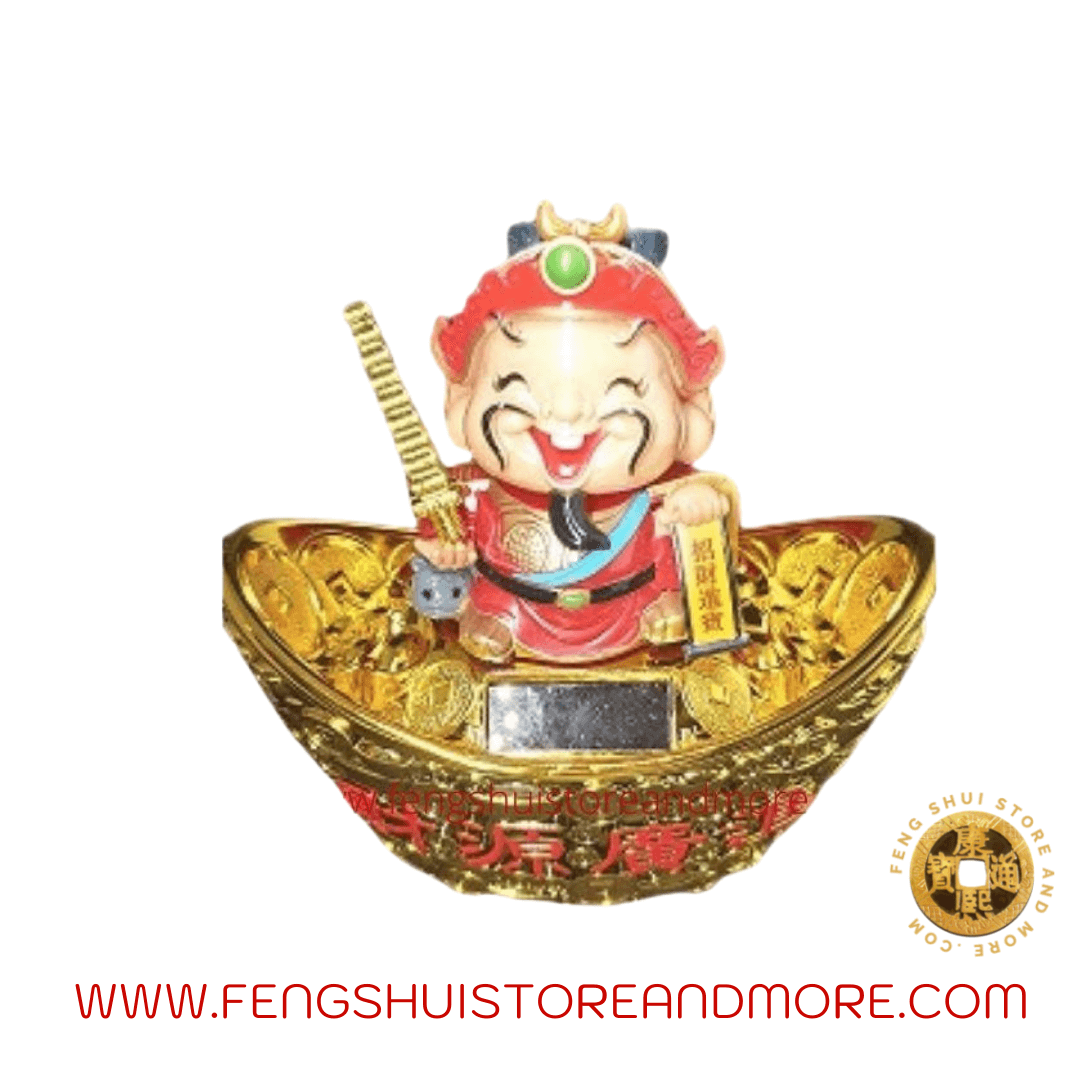 Feng Shui Meaning: The King of wealth luck, one of the most popular wealth gods. China is one country that has a God related to abundance and is in most homes. Welcoming in the abundance. Tsi Shen is also holding the Education Tower for scholastic abundance and success. Said to support those experiencing education or learning or exams. Displaying this wealth god is said to bring protection for your financial life. He will need to have plenty of light to ensure that his little head will bobble - his head moves slowly and consistently.